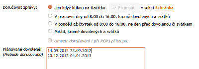 Čas, kdy Vám mají být zprávy přeposílány (doručovány dle zákona), si můžete přesně nastavit: